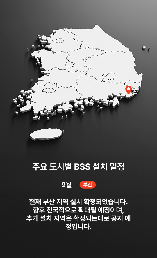 2025년 9월, 부산을 시작으로 전국 주요 도시에 BSS 서비스가 순차적으로 확대됩니다.