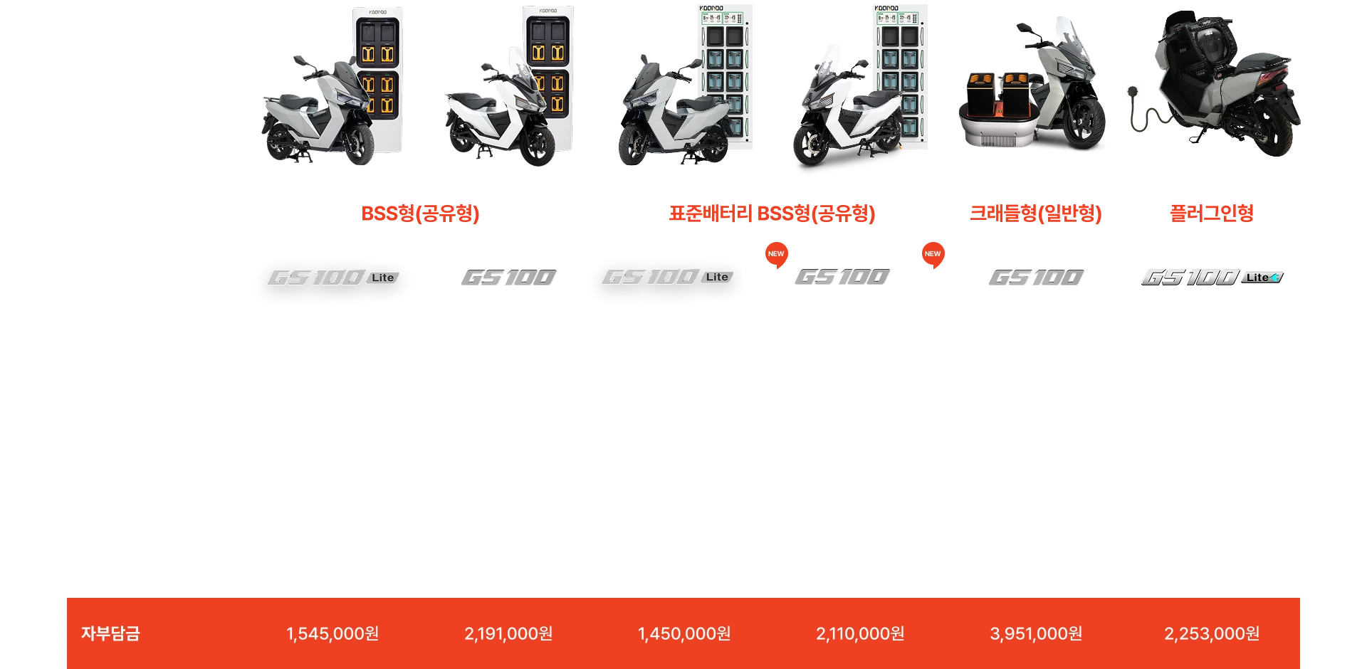 GS100: 배터리 공유형의 경우 115만원이 나오고, 배터리 일반형의 경우 192만 원이 나옵니다.